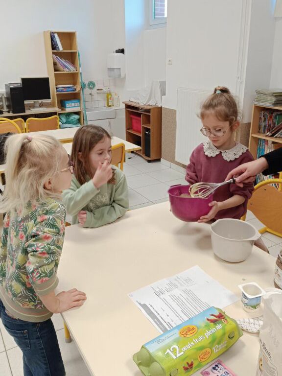 Pour fêter les anniversaires de la période en CP, un atelier cuisine a eu lieu le mardi 20 janvier.