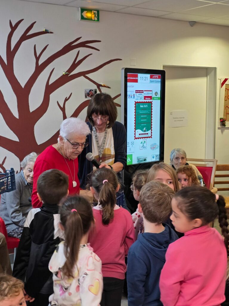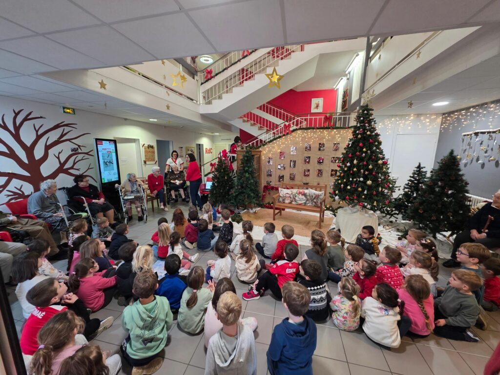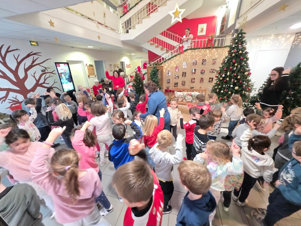 Les élèves de maternelle et CP ont partagé un moment convivial avec les résidents de l’EHPAD. Au programme des chants de Noël, la danse du Père- Noël, et l’échange de petits cadeaux !
