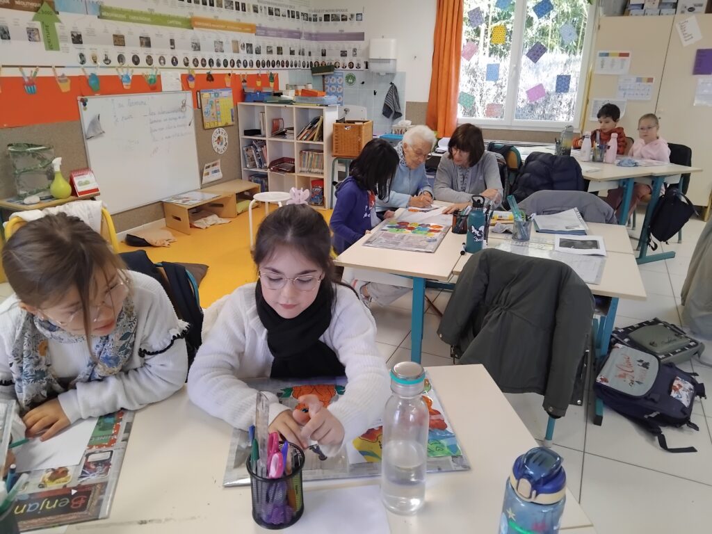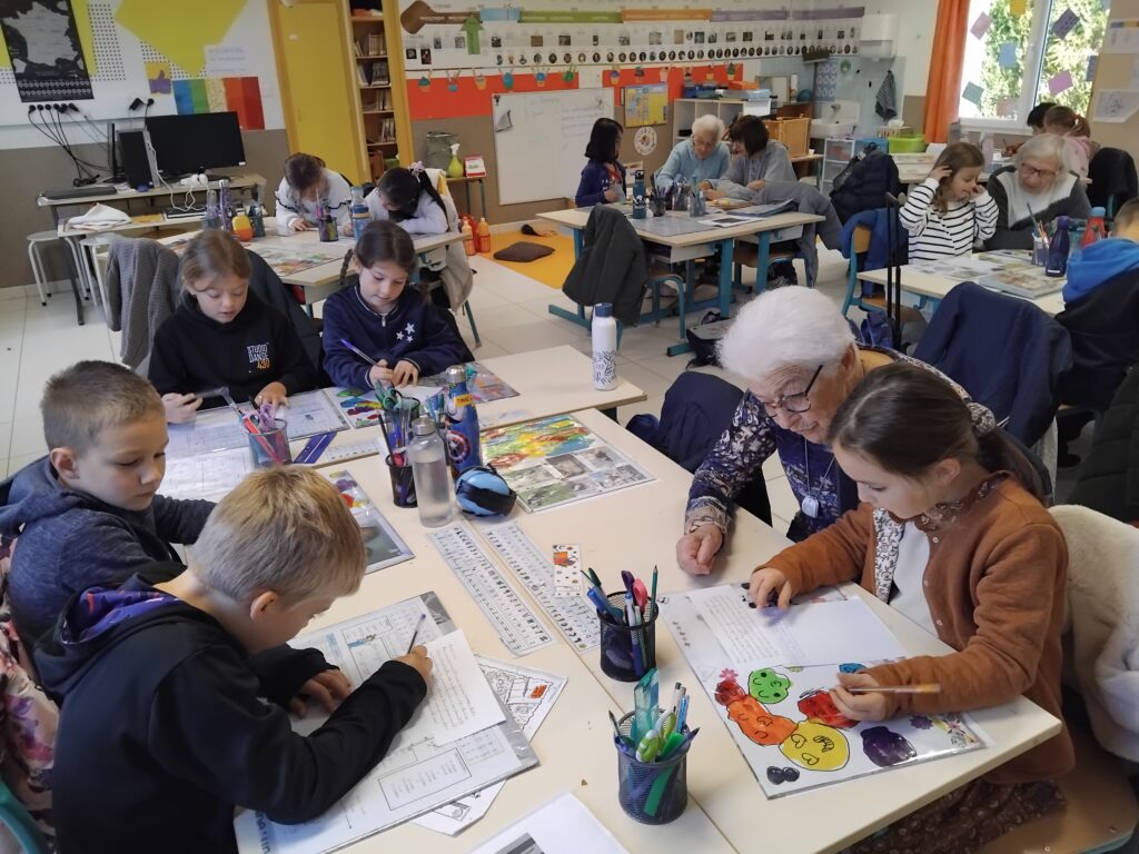 Les élèves de CE1 s’associent à quelques résidentes de l’EHPAD pour leur projet correspondance. Cette année, ils vont écrire et envoyer une carte postale dans une école de chaque département Français. Notre premier envoi touche les écoles des départements de 86 à 976 plus les pays Tunisie Ecosse et Canada.