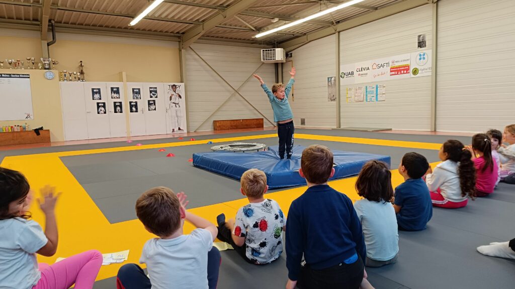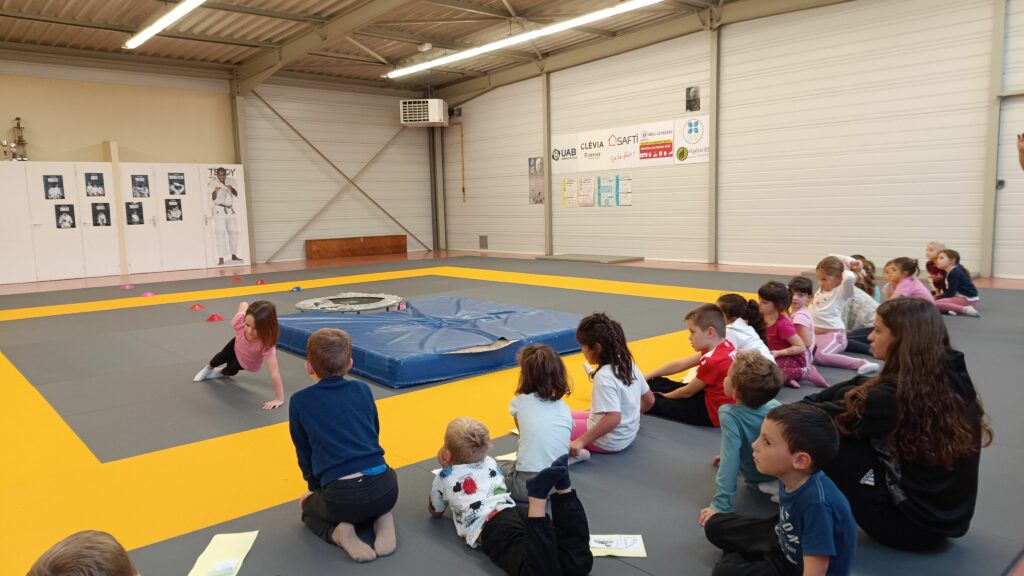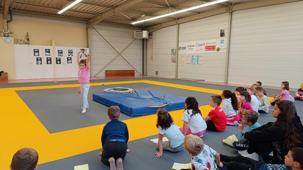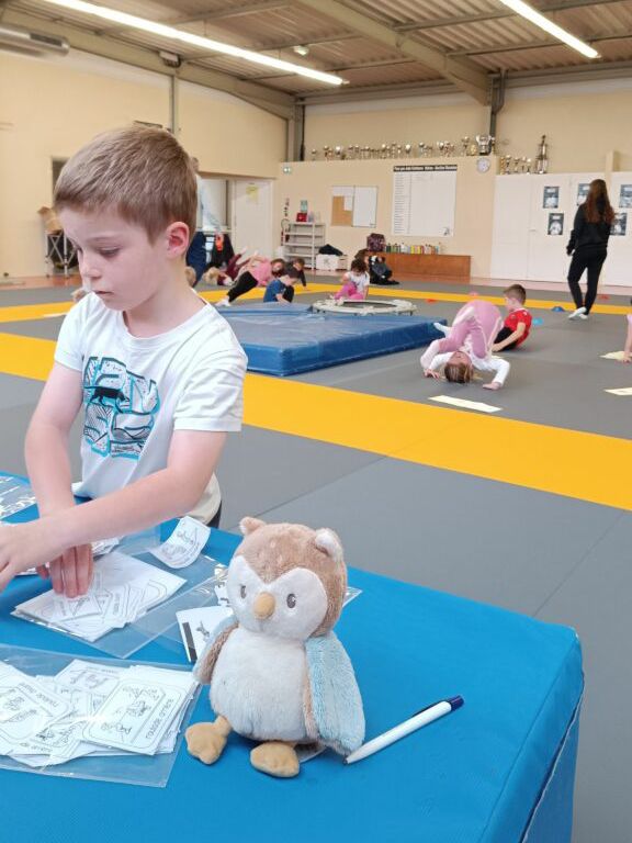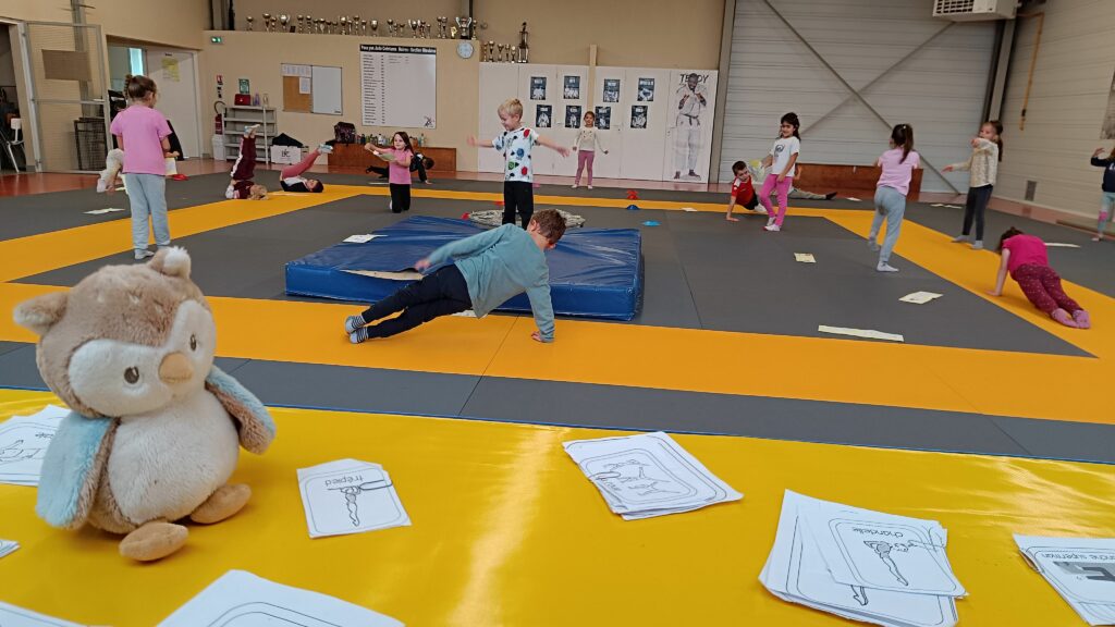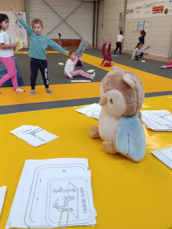 La classe de CP a commencé le cycle gymnastique au mois de septembre. Découverte pour tous: chandelle, roulade avant/arrière, roue, rondade, appui tendu renversé… Tout cela sous l’oeil attentif de Juliette la chouette, notre mascotte !