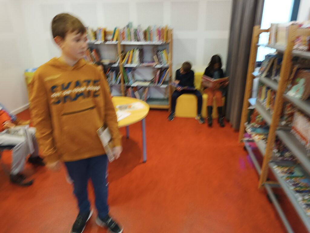 Tous les mois, les CM vont à la bibliothèque pour lire dans la tranquillité, et pour emprunter des livres qu’ils laisseront dans la classe ensuite.