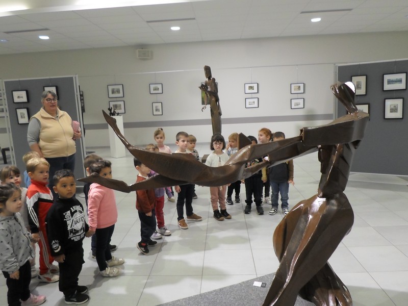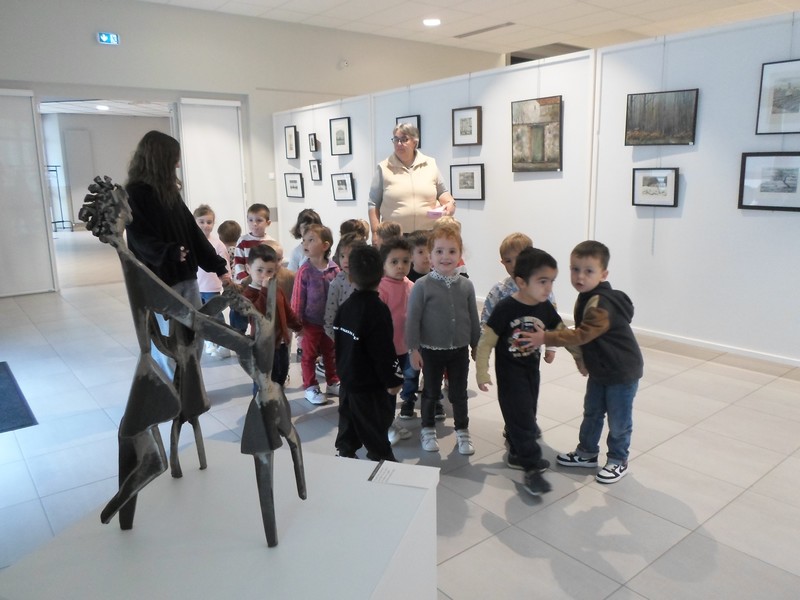 Cette semaine la commune accueille deux artistes, l’occasion pour les petits de visiter une exposition avec des sculptures et des peintures .