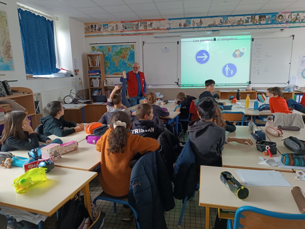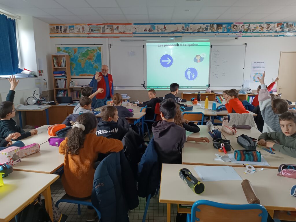 Ce lundi 3 avril, un intervenant en prévention routière est intervenu 2h pour les CM1 et 2h pour les CM2. Il a expliqué les différents panneaux que les élèves peuvent rencontrer sur la route, il a identifié les marquages au sol, le fonctionnement des ronds points, des routes à plusieurs fois. Après cette partie théorique, les enfants auront une intervention avec leur vélo ce vendredi 7 avril pour valider leur savoir-faire et leurs compétences sur un circuit installé dans la cour de récréation.